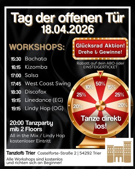 Am 18.04.2026 öffnen wir unsere Türen für Dich – die perfekte Gelegenheit, Tanzen ganz entspannt…
